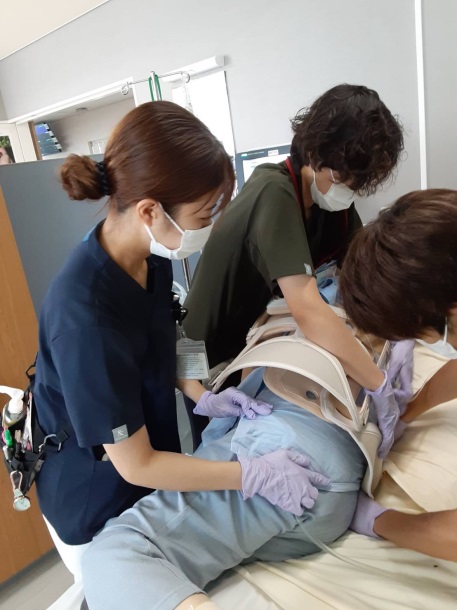患者さんの容体が急変する可能性が高いため、全身状態のアセスメントし、異常の早期発見に努めています。いつ重症化するかわからず常に不安抱いておられるご家族に対しても、その思いを聞き、心のケアができるよう心がけています。 |