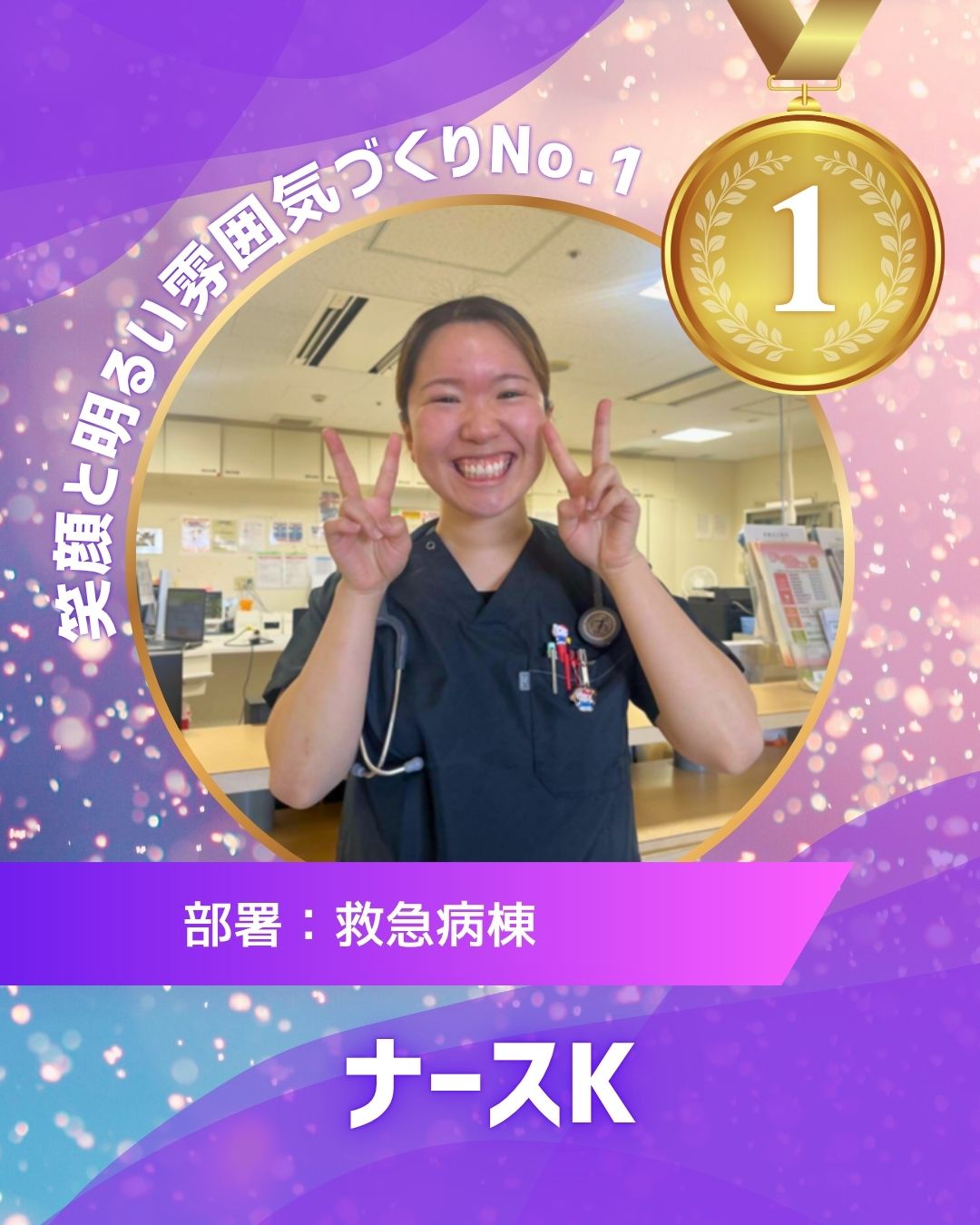 スタッフにも笑顔を絶やさず、前向きなコミュニケーションで病棟全体をパッと明るくしてくれる大切な存在です!