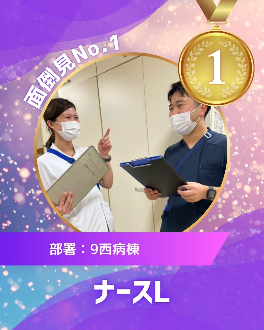 ナースLさんは、周囲から「面倒見No.1」と言われるほど後輩やスタッフへの気配りに優れた看護師です。